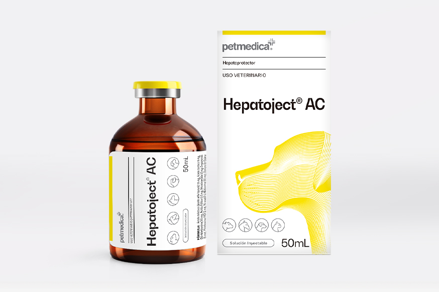 Hepato-Ject® AC es un hepatoprotector, indicado en caninos, en casos de insuficiencias hepáticas leves o graves, intoxicaciones medicamentosas o como consecuencia de anestesia general, convalecencia de enfermedades, exceso de entrenamiento, falta de apetito, hígado graso, hepatitis agudas o crónicas, cirrosis (infecciosas o tóxicas), astenia y fatiga habitual, urticarias y otras enfermedades de origen alimenticio, meteorismo, flatulencias por causas alimenticias y en fotosensibilización.